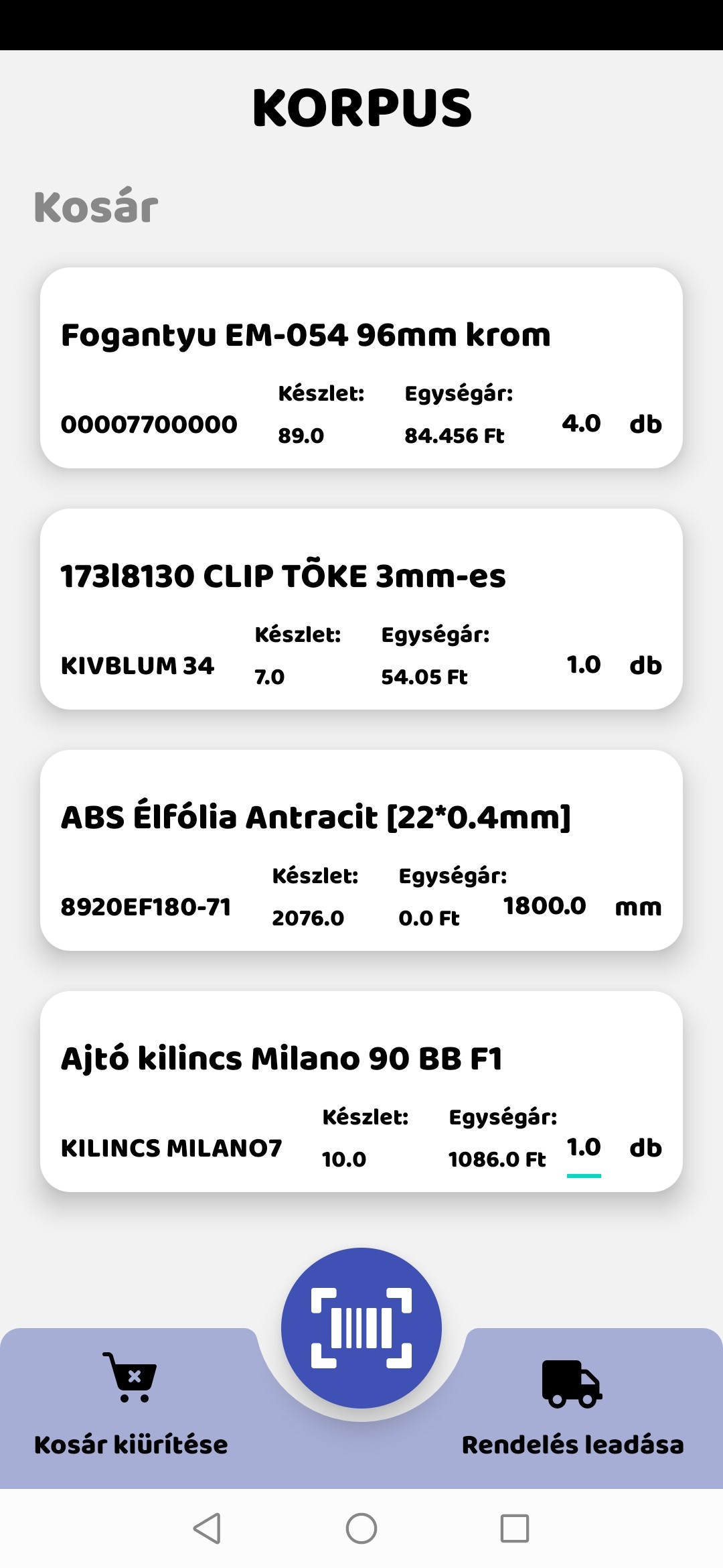 A KORPUS Select mobil alkalmazás feladata az értékesítési folyamatok támogatása az értékesítésben részt vevő munkatársak által kezelt okostelefon segítségével. A modul használatának előfeltétele a termékekhez történő vonalkódok hozzárendelése. Az alkalmazás használata során az adott értékesítés tételei egy távoli ponton – a termék vonalkód leolvasásával és a mennyiség megadásával – rögzíthetőek, majd a folyamat lezárását követően automatikusan továbbításra kerülnek a rendszer megfelelő adatbázisába. A mobil alkalmazás kosarában rögzített termékek egy értékesítés bizonylatra helyezhetőek fel, melyről közvetlenül készíthető szállítólevél, raktári összeszedési bizonylat, számla.