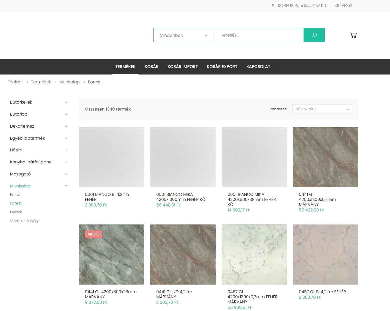 A KORPUS WEBORDER termékeinek, árkategóriáinak és partnereinek karbantartása történhet automatikusan a KORPUS WAREHOUSE modullal történő szinkronizálás során, vagy ennek hiányában egy Excel kompatibilis állományból történő feltöltéssel.