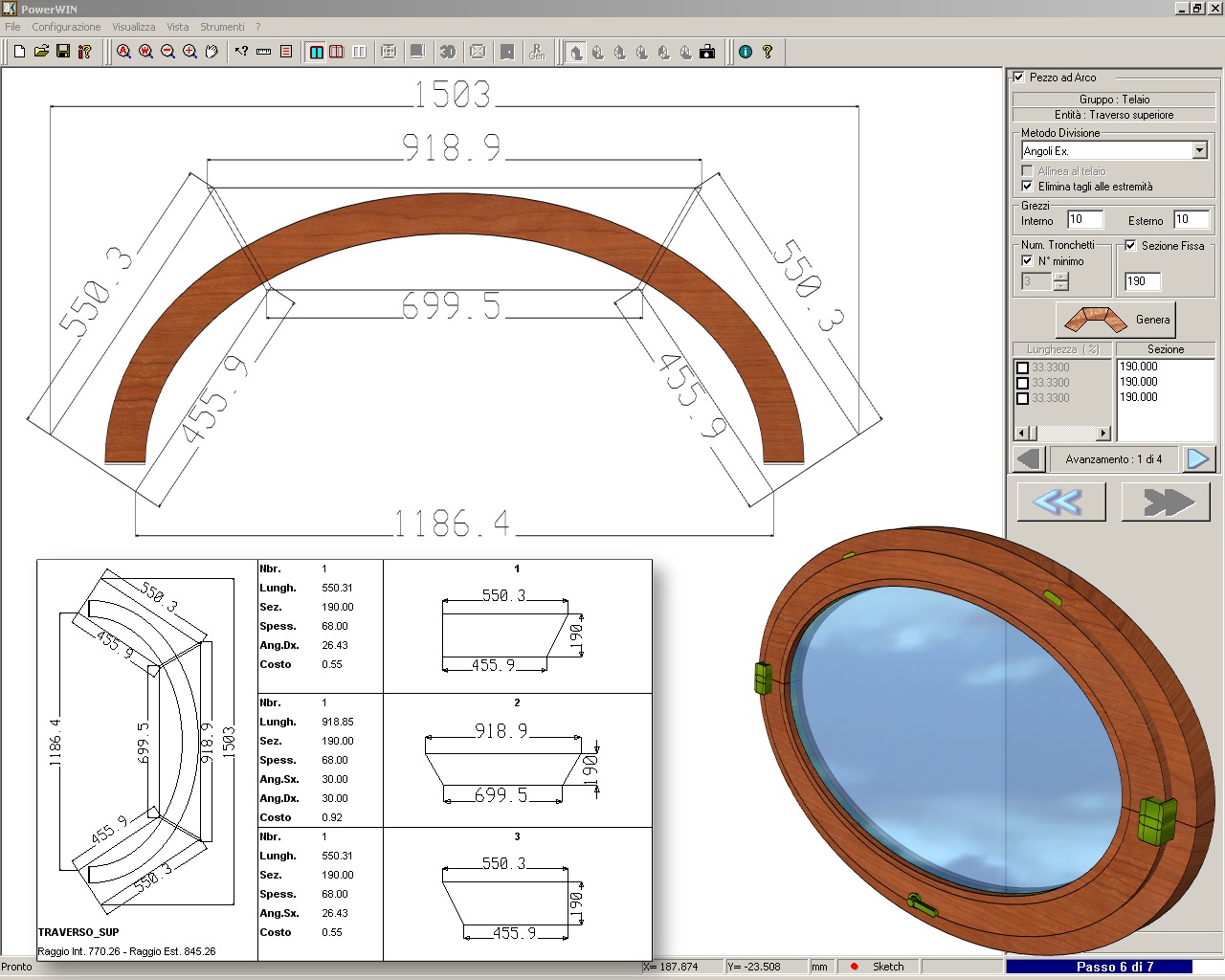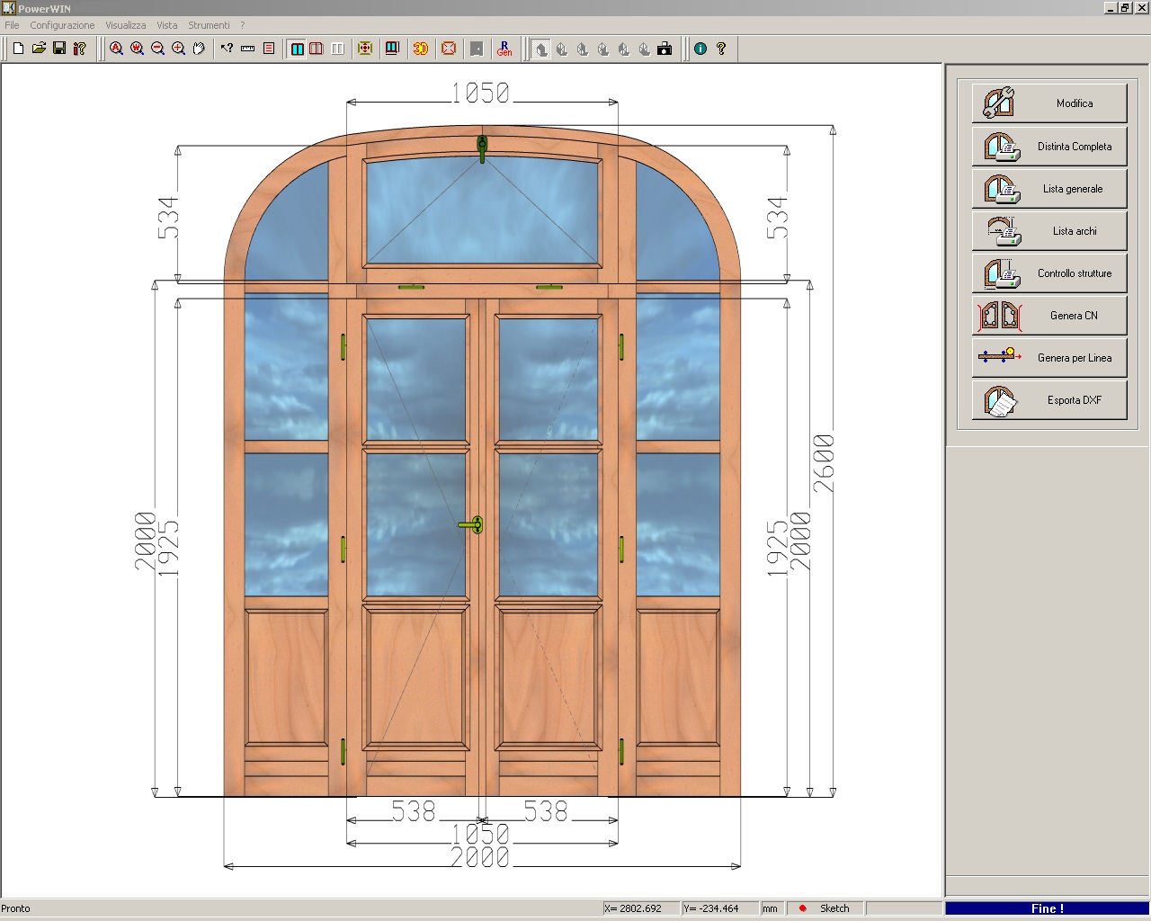 A KORPUS POWERWIN által készített minden terv parametrikus, vagyis a méretek módosításával minden egyes alkotóelem pozíciója automatikusan meghatározásra kerül (beleértve a vasalatokat is).